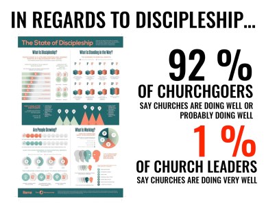 What was interesting was that in the same study, churchgoers said the goal of discipleship was “learning to live a more consistent Christian life.” Church leaders on the other hand said the goal was “being transformed to become more like Jesus.” So which is it- consistency or transformation? Different definitions can result in different ideas of success.